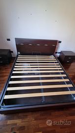 Letto matrimoniale contenitore con Comodini. Struttura in legno impiallacciato.