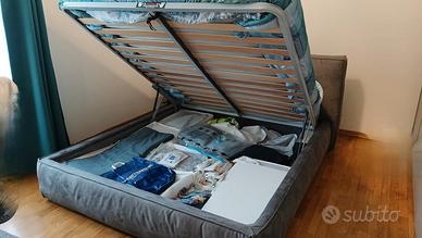 Vendo letto matrimoniale contenitore della Giessegi, con tessuto in microfibra colore blu/grigio