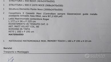 Vendo bellissimo letto matrimoniale contenitore modello Roger della Di Lorenzo Arredamenti, completo e pronto all'uso, perfetto per chi cerca design e massima praticità. Il letto è stato tenuto con la massima cura. CARATTERISTICHE PRINCIPALI: - Modello: letto matrimoniale contenitore Roger con spalliera e piedini. - Rivestimento: pregiato tessuto Matt Velvet (Col. 85) idrorepellente per una facile pulizia, morbidissimo al tatto e con eleganti cuciture in tinta. - Dimensioni esterne: L 177 cm x P 225 cm x H 98 cm. - Rete: a doghe, 160 x 195 cm, con comodo meccanismo di sollevamento per accedere al capiente vano contenitore sotto il materasso, un vero salvaspazio! - Materasso matrimoniale Memory Touch: dimensioni 160x195 cm, altezza 23 cm. Ergonomico e confortevole. - Stato: eccellente, paragonabile al nuovo. 📍 Disponibile per il ritiro a Napoli presso piazza Giuseppe Di Vittorio (rotonda Capodichino). Contattami subito per vederla dal vivo!