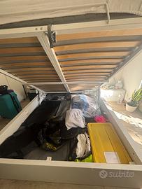 Letto matrimoniale contenitore Ikea modello Malm 160x200. Doghe in legno. Senza materasso. Colore bianco. Presenta piccole imperfezioni