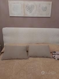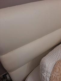 Regalo letto contenitore in ecopelle.con doghe. Perfetto come struttura ma un po rovinato sulla testiera per cui è stato coperto da apposita fodera Periodo per il ritiro verso fine settembre. Smontaggio e trasporto a carico di chi ritira.