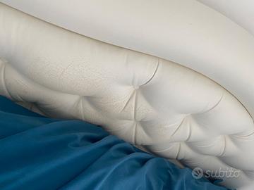 La struttura del letto è in ottime condizioni, la testata sarebbe da far rivestire o coprire in quanto grattandosi di tessuto ecopelle con il calore si è un po’ deteriorata.