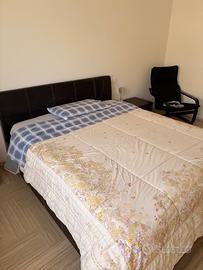 Regalo letto matrimoniale con ampio contenitore, comprensivo di rete e materasso. Presenta qualche segno di usura sullo schienale in pelle. No spedizione, chi fosse interessato dovrà ritirarlo. Eventuali costi di trasporto a carico dell’acquirente.