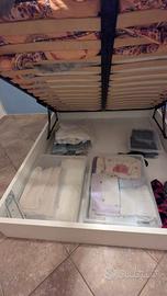 Vendo letto matrimoniale a contenitore . Colore bianco, in legno, doghe praticamente nuove. . Misure: Rete 200x160 Struttura 215x170 . Ritiro a mano a Prato a carico dell'acquirente, letto già smontato