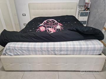 letto matrimoniale contenitore bianco ecopelle misure 176 larghezza 205 lunghezza 114 altezza spalliera leggermente rovinato testiere da una parte