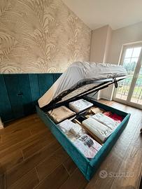 Vendo letto matrimoniale con contenitore color verde petrolio, con o senza testiera.
