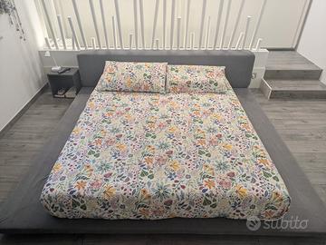 Vendo letto matrimoniale di design, stile giapponese, da negozio artigianale Trento. NO materasso, doghe in legno. Sfoderabile.