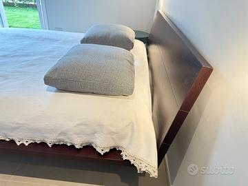 Propongo in vendita un raffinato letto matrimoniale di design, caratterizzato da un’estetica minimalista e contemporanea, con struttura in noce dalle linee morbide e sinuose.