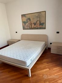 Struttura del letto matrimoniale in legno abbinata a due comodini e un cassettone. (Disponibile anche con materasso )