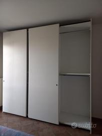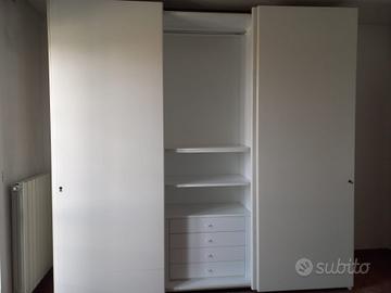 LETTO matrimoniale con doghe in lego senza materasso euro 200 e ARMADIO a tre ante scorrevoli e cassetti dimensioni L. 274 cm. H. 264 cm. P. 65 cm. euro 250. L'interessato deve provvedere al ritiro.