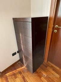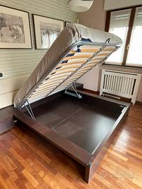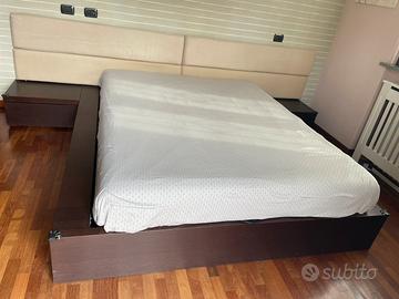 Vendo letto matrimoniale in legno marca San Giacomo completo di testata in tessuto, contenitore molto capiente, comodini e comò