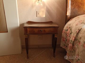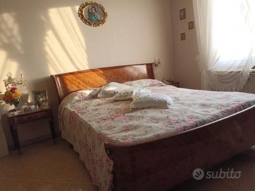 Vendo complessivamente o anche separatamente : Bel letto matrimoniale in radica stile Impero, con reti eventualmente sostituibili con doghe (cm. 182 x 200), comprensivo di 2 materassi in lana e con i 2 comodini (cm.80 x 33 x h.55) [ il tutto : € 80 ] + Comò stesso stile Impero ( cm. 187 x 73 x 51 ) comprensivo di specchiera ( cm. 94 x 159). Altezza totale : cm. 232 [ € 80] Da prelevare esclusivamente sul posto a Bologna in Via della Ferriera 17 su appuntamento.