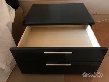 Letto matrimoniale in legno laccato nero e comodini. Da mobilificio no Ikea