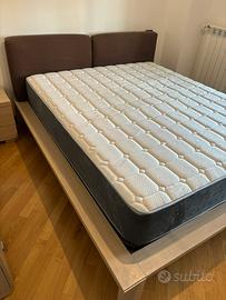 Letto matrimoniale completo di materasso alto, rete e cuscini spalliera