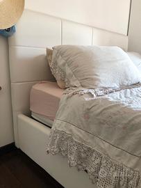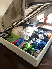 Letto matrimoniale Eminflex (con contenitore). Testata e bordi morbidi in ecopelle bianca. Venduto assieme al suo materasso double-face.