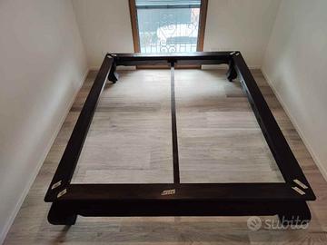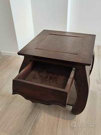 Letto matrimoniale etnico in teak massello corredato da due comodini con cassetto. Possibilità di avere anche una rete a doghe con regolatori di rigidità. Trasporto autonomo