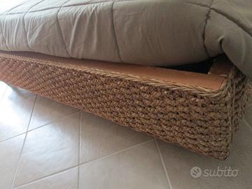 Bellissimo introvabile letto matrimoniale artigianale in fibra di banano (no rattan, no abaca!), intrecciato a mano, di produzione sud-est asiatico (Indonesia).