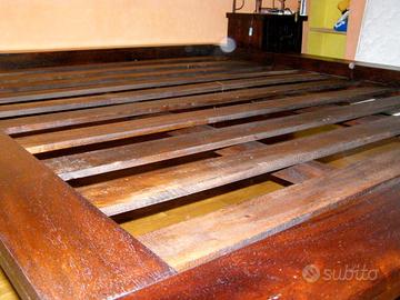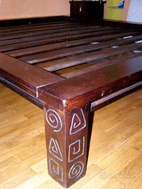 Vendo letto etnico in legno, brand BIZZOTTO, con doghe in travetti. Completamente Smontabile. Incluso n.1 comodino abbinato BIZZOTTO Misure: 223x192x h35