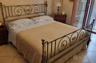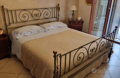 Vendo letto matrimoniale in ferro battuto in ottime condizioni e struttura molto solida e resistente. Il letto viene ceduto completo anche di rete con doghe in legno (escluso però il materasso). Disponibile per ulteriori informazioni.