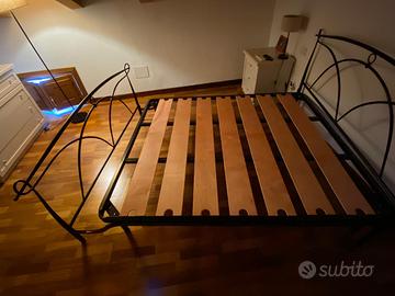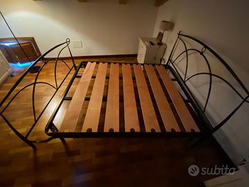 Struttura letto ferro battuto, ben tenuto. Doghe in legno tutte intatte