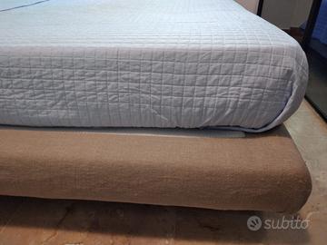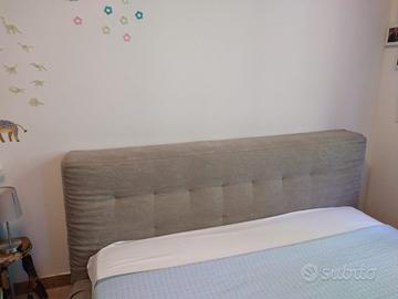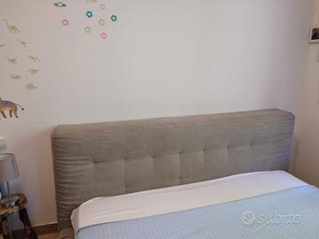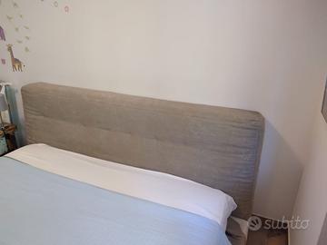 Letto matrimoniale con testiera imbottita completamente sfoderabile, rete a doghe acquistato nel 2018. Dimensioni specificate in foto.