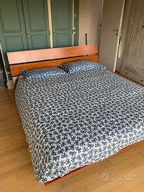 Misure 190 x 215 (troppo grande per la nuova camera) finitura ciliegio può ospitare un materasso matrimoniale fino a 180 di larghezza.