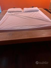 letto matrimoniale in stile giapponese, interamente in legno, colore naturale. comprensivo di rete e materasso. no spedizione.ritiro in zona. misure 264cmx235cm,altezza bordo 30cm.