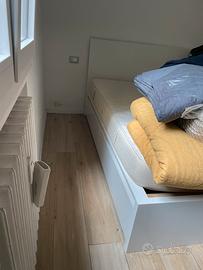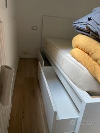Vendo letto matrimoniale Ikea completo di reti e materasso matrimoniale in ottime condizioni ….Il letto è Thoe di quattro cassettoni due per ogni lato… Presenta una piccola crepa nella spalliera del letto… Non spedisco smontaggio a carico dell’acquirente