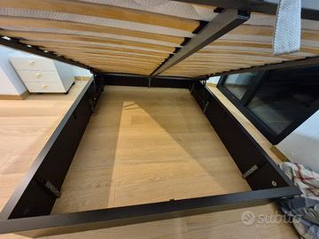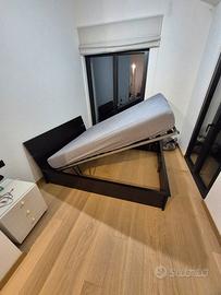 letto matrimoniale ikea misure 172x220cm, per materasso 160x200cm (escluso). cassettone alzando la rete con meccanismo a pistoni. il letto è in ottime condizioni ma cigola un po' (probabilmente i pistoncini da lubrificare)
