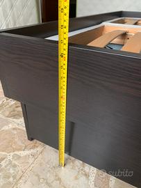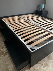Letto matrimoniale Ikea con reti a doghe e cassettoni contenitori misura 216x166 h43 cm colore wengè scuro usato poco, smontaggio e trasporto a carico acquirente. Primo piano con parcheggio comodo