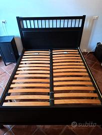 Vendo letto matrimoniale IKEA nero con doghe singole in legno Nordica incluse, resistenti e di qualità.
