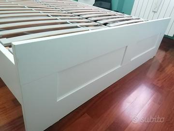 Letto matrimoniale Ikea con reti a doghe Sultan, struttura letto bianca Rimnes, struttura Metallica Skorva, testiera del letto in legno massello con 6 mensole bianche non in foto. Per info, misure e altre eventuali foto non esitate a chiedere. Solo Ritiro a mano solo a Roma