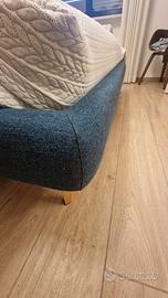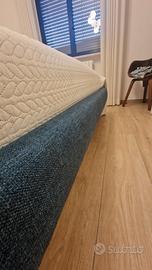 Vendo letto matrimoniale imbottito colore blu petrolio con trama grossa e testata mobile (posizione verticale o inclinata) in buone condizioni, con 3 anni di vita.