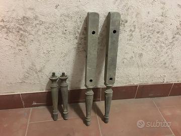 Sponde in scatolato di ferro collegate da due traverse con piedino centrale: sistema per reti sospese (non presenti); struttura complessiva tutta imbullonata, molto robusta e stabile; tutti i piedini, sei, sono regolabili.