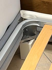Letto matrimoniale in ecopelle. Misure testata 190cm, profondità 220cm, piedi 168cm. Rete per materasso 200x160 cm. Il letto è molto rubusto e la rete è eccezzionale. Unico neo l’ecopelle in alcuni punti è leggermente sciupata. Disponibile fine marzo/primi di aprile. Ritiro a carico dell’acquirente a Lido di Camaiore (LU).