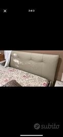 Vendo causa trasloco letto in ecopelle, colore crema chiara, contenitore con segni di usura come da foto con doghe in legno (no materasso). Compreso il copritestiera in tono. Prezzo trattabile - già smontato