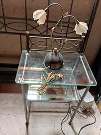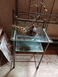 Vendo letto in ferro battuto completo di due comodini dello stesso stile con due ripiani di vetro e due lampade con luci alogene sempre in ferro, il letto non predispone di rete o doghe.