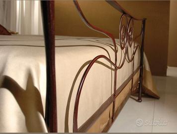 Letto matrimoniale in ferro battuto (ferro pieno, artigianale e di lusso) in versione matrimoniale comprensiva dei comodini in ferro battuto e con base in cristallo.