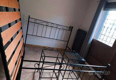 Vendo due letti matrimoniali in ferro battuto completi di rete e comodini abbinati.