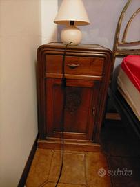 Letto matrimoniale in ferro completo di rete a doghe, materasso ortopedico in buono stato, 2 comodini in legno con ripiano in marmo.