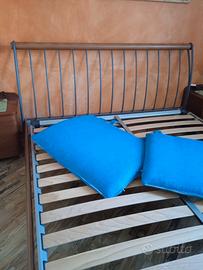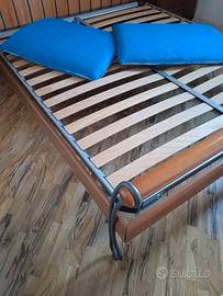 LETTO IN LEGNO E FERRO BATTUTO COMPLETO DI RETE E POGGIA TESTA SFODERABILI