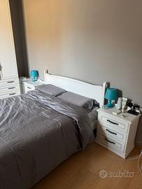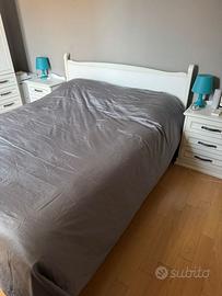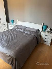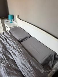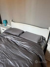 Vendo letto matrimoniale di alta qualità, in legno massello bianco, con testiera dal design elegante e moderno, con materasso. Non è IKEA: si tratta di un prodotto artigianale Made in Italy, robusto e curato nei dettagli.