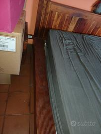 Letto matrimoniale in legno massello di sheesham (palissandro indiano), stile etnico, come nuovo. Struttura molto solida, con bellissime venature naturali. Doghe incluse. Usato pochissimo, vendiamo esclusivamente per trasferimento in altra abitazione e cambio stile di arredamento. Il letto è attualmente smontato, completo di tutti i pezzi e facilmente rimontabile. Materiale: 100% legno massello Condizioni: pari al nuovo Stile etnico caldo ed elegante Disponibili anche due comodini coordinati nello stesso legno (non fotografati). Ritiro a carico dell’acquirente Prezzo trattabile – contattami per info o altre foto