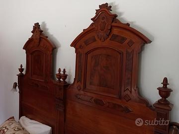 Stile classico/antico, con testata doppia sagomata e dettagli intagliati tipici di fine Ottocento / primi Novecento.