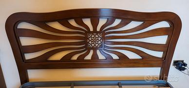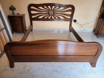 Svendo a prezzo PER AFFARE letto MATRIMONIALE in LEGNO MASSELLO di NOCE, lavorato da MAESTRI ARTIGIANI ITALIANI con intarsi e decori intagliati.
