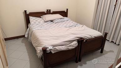 Vendo letto matrimoniale in legno stile classico con testiera e pediera lavorate con inserti in paglia di Vienna.