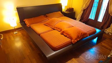Vendo letto matrimoniale in legno e testata in pelle, stile Giapponese moderno, bellissimo.