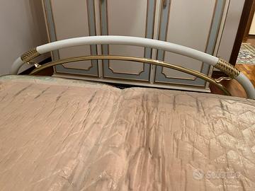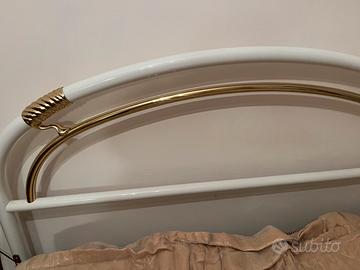 Vendo letto matrimoniale in metallo, colore bianco con finiture in ottone, dal design elegante e classico.