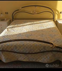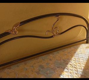 letto matrimoniale in metallo brunito in canna di fucile con supporti in colore oro