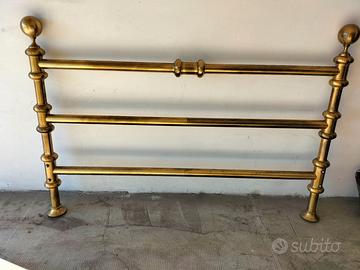 Letto matrimoniale in ottone brunito a due piazze come in foto senza la rete che puo'essere inserita sia con I piedi che appoggiata ai ganci forniti da mettere sulle traverse.
